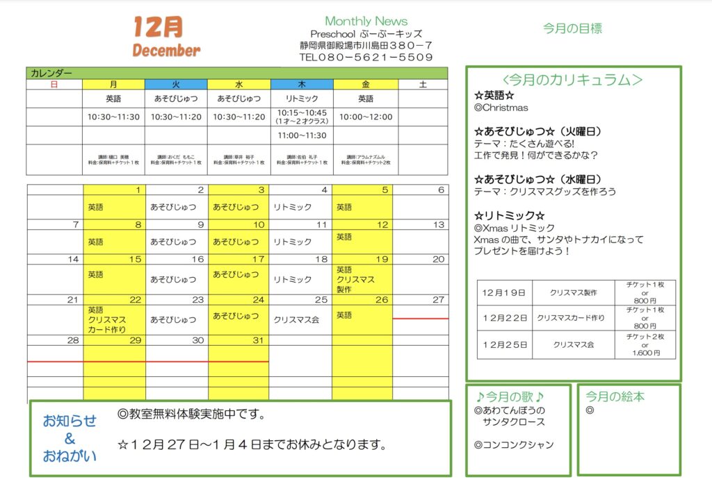 | 内容 | 外遊び+お教室(プレスクール) あそびじゅつ・英語・リトミック |